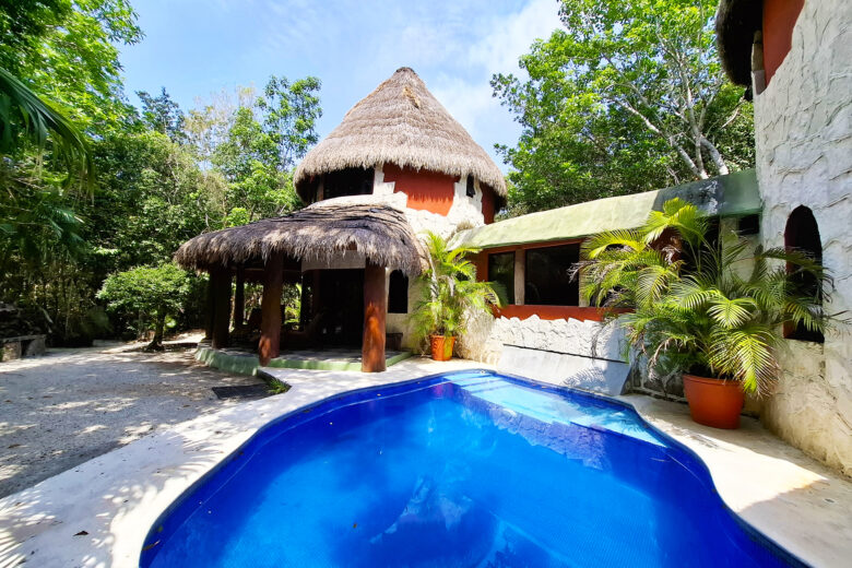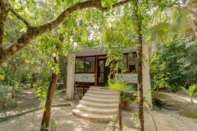 Hermosas y únicas casas de madera y piedra en plena armonía con la naturaleza, inspiradas por el arte y la vibración estética del amor de su creadora. Entre senderos protegidos por la densa selva y sus sonidos característicos, encontrarás un espacio perfecto para un encuentro contigo mismo.