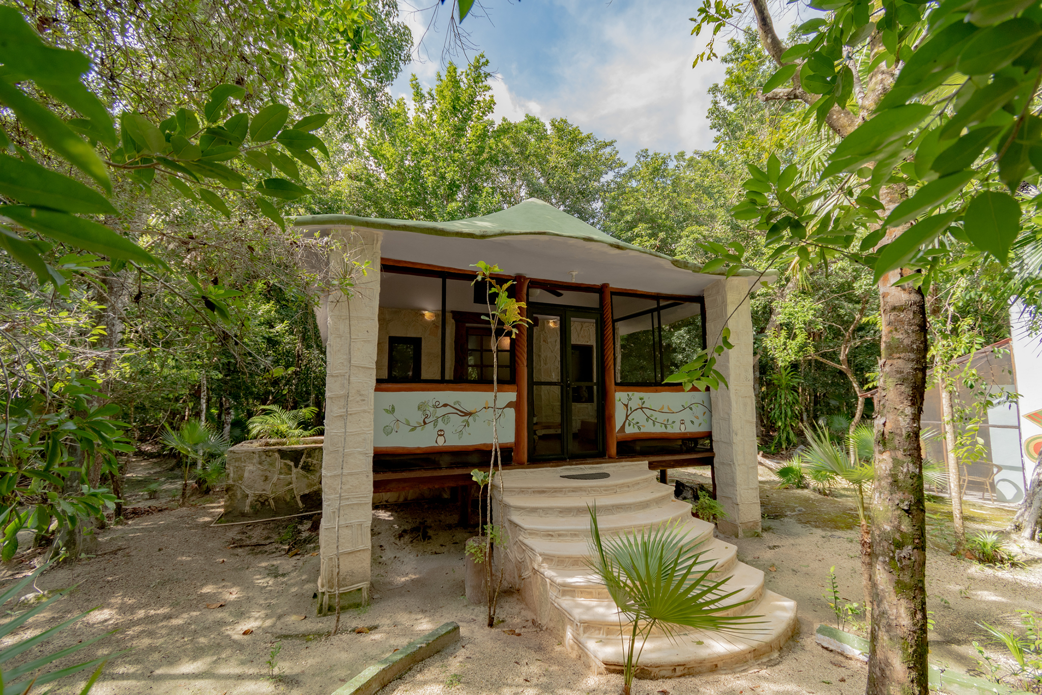 Casa Búho es una casa pequeña pero acogedora con un estilo único, perfecta para una escapada romántica en el corazón de la enigmática selva maya.