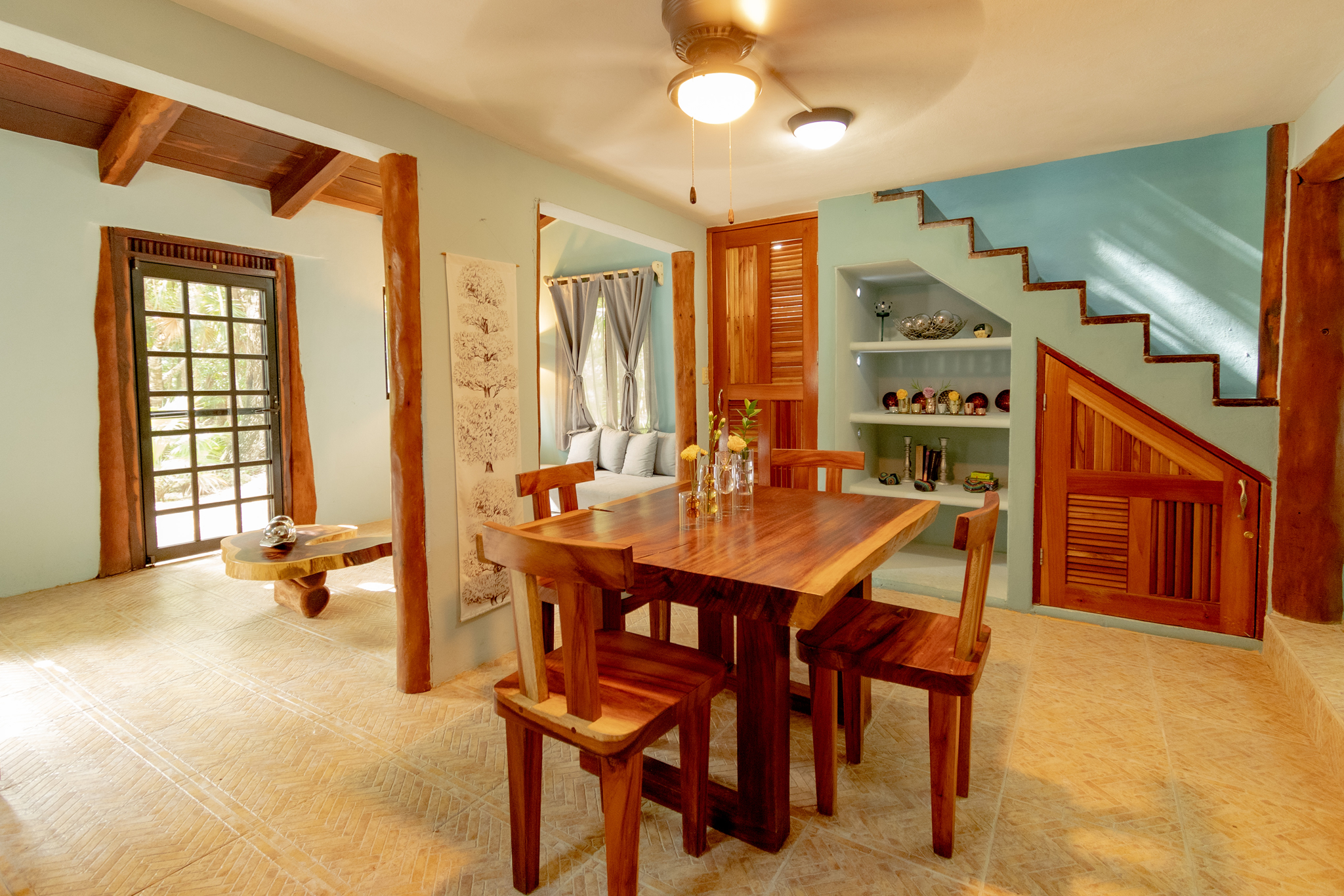 La casa tiene 3 plantas, un baño y medio, una preciosa cocina, además de wifi y aire acondicionado.